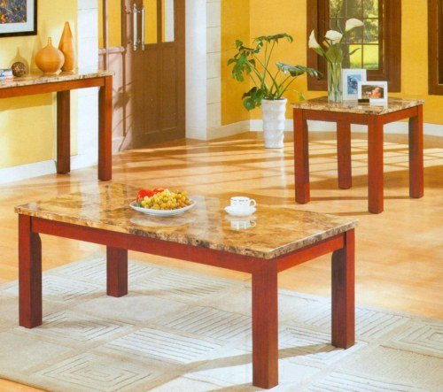 "Cherry Finish Marble Top 3 Piece Occasional Set" Overview
