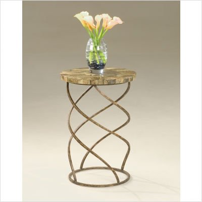 "Metalworks Round Accent Table with Curved Metal Base" Feature