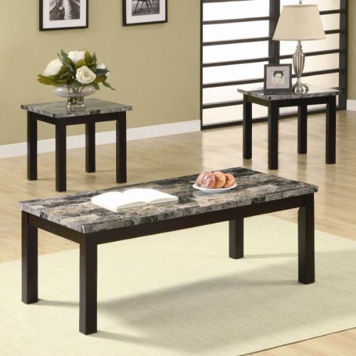 Best Price "3pc Coffee Table and End Tables Set with Marble Top in Nut Brown Finish" for Sale