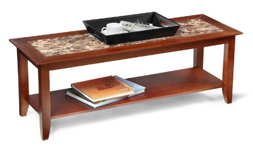 - Coffee Table with Faux Marble Top in Cherry Finish
