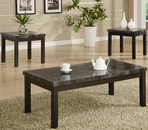 Best Price "3pc Coffee Table and End Tables Set with Marble Top in Black Finish" for Sale