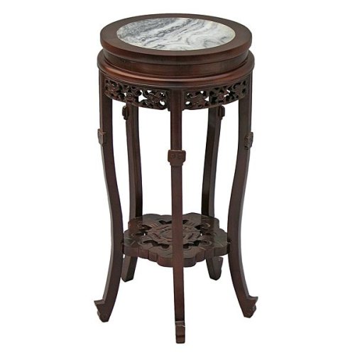 This Oriental round end table, handmade from wood and embellished with a decorative marble top will add Eastern elegance to any room in your home. Perfect for showing off your favorite lamp, a bouquet of flowers or anything else you can imagine on the decorative marble top. Below the marble surface is a handcrafted tier that supports the five classically shaped cabriole legs. This tier is carved in the shape of a blooming, five-sided flower and is perfect for showcasing your favorite ornamental vase or plant. Three softly layered beveled edges support the white, gray and black marble top. The intricate floral pattern around the table's top perimeter is a testament to the artisan's expert craftsmanship. This beautiful Chinese round end table is a perfect addition to any room in your home. Measures 24 inches high and 14 inches in diameter. AsiaEXP brings you authentic, handcrafted goods from a variety of world cultures. With this purchase, you are not only receiving a beautiful product, but you are supporting a great cause. Many Chinese craftsmen utilize their fine carpentry skills, passed down through generations over hundreds of years, as their main means of support. Your purchase enables native artisans to support families while pursuing their craft. This not only ensures the sustainability of the talented individuals making these fine products, but also helps to preserve the rich cultural heritage of China. The handcrafted nature of this product will produce minor differences in design and sizing. Subtle variations will occur from piece to piece, adding to the uniqueness of individual items. Measurements may vary slightly. No assembly required.