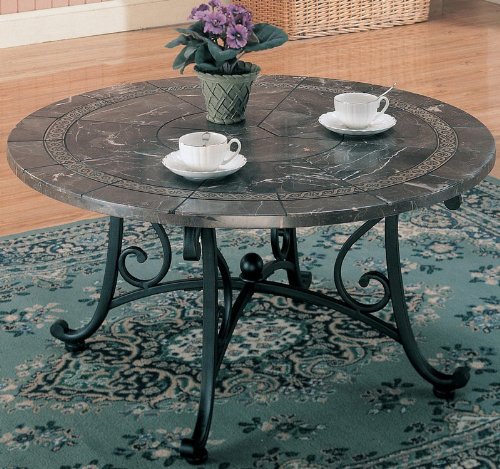 "Coffee Table with Marble Look Top Scroll Styled Metal Base" Features